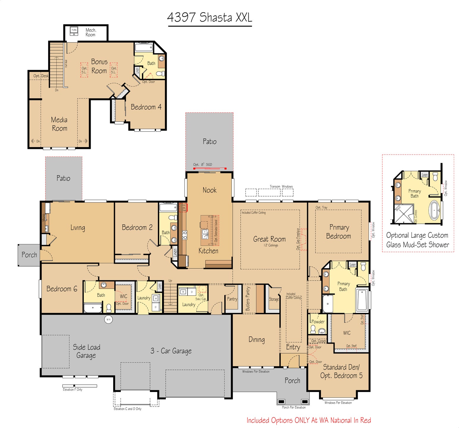 Welcome to the Shasta XXL Multi-Gen floor plan, a sprawling residence that encompasses 4397 square feet of luxurious living space. With 4-5 bedrooms and 3.5-4 bathrooms, this thoughtfully designed layout offers both comfort and versatility to accommodate various lifestyles.